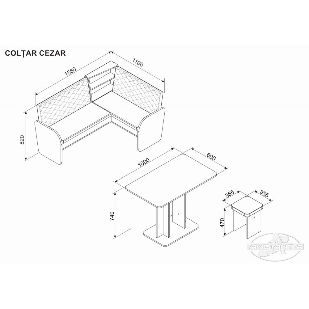 | coltar +2 taburete | 1580 x 1100 x 820 | 3 770 lei |